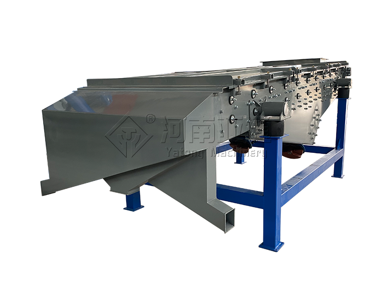 直线筛主要由筛箱、筛框、筛网、振动电机、电机台座、减振弹簧、支架等组成。