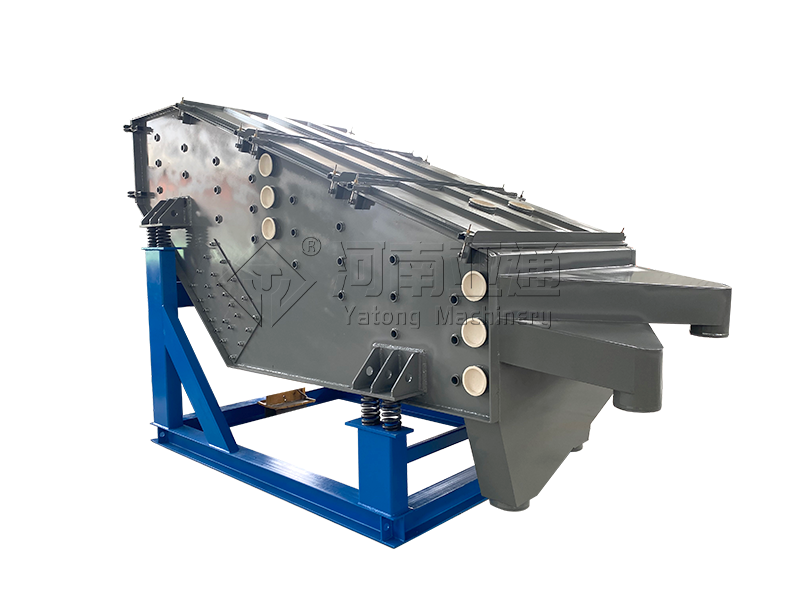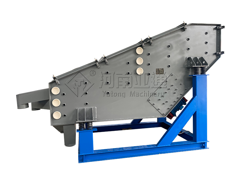 当筛机启动时,对称布置的两台同类型、同规格的振动电机或激振器同步反向运转,它们产生的激振力通过电机或激振器底座传递到筛箱上。 使筛箱带动筛面作周期性振动,使筛面上的物料随筛箱一起作定向跳跃运动,在此过程中,小于筛面孔径的物料穿过筛孔落到下层,作为筛下物,大于筛面孔径的物料经连续跳跃运动后从排料口排出,完成筛分作业。